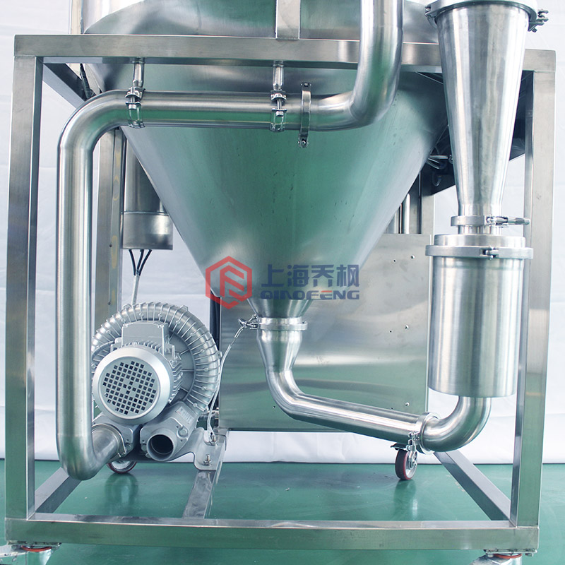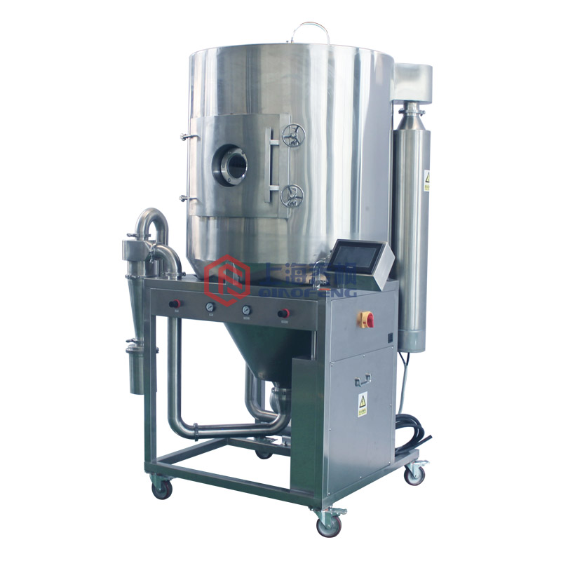 造粒噴霧干燥機是上海喬楓自主研發的一套造粒噴霧干燥機的。QFN-ZL系列造粒噴霧干燥機(喬楓**)專門的雙氣送液造粒噴頭,國內一大創新,直接將均勻的球形霧滴通過均勻的熱量變成顆粒。