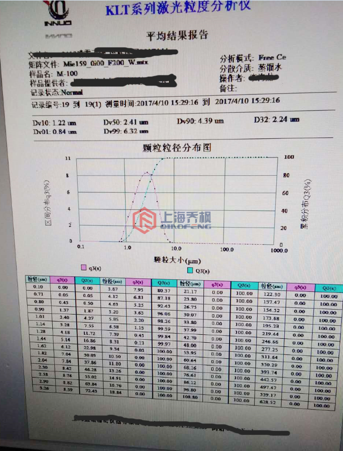 粒度檢測(資料來源于客戶):